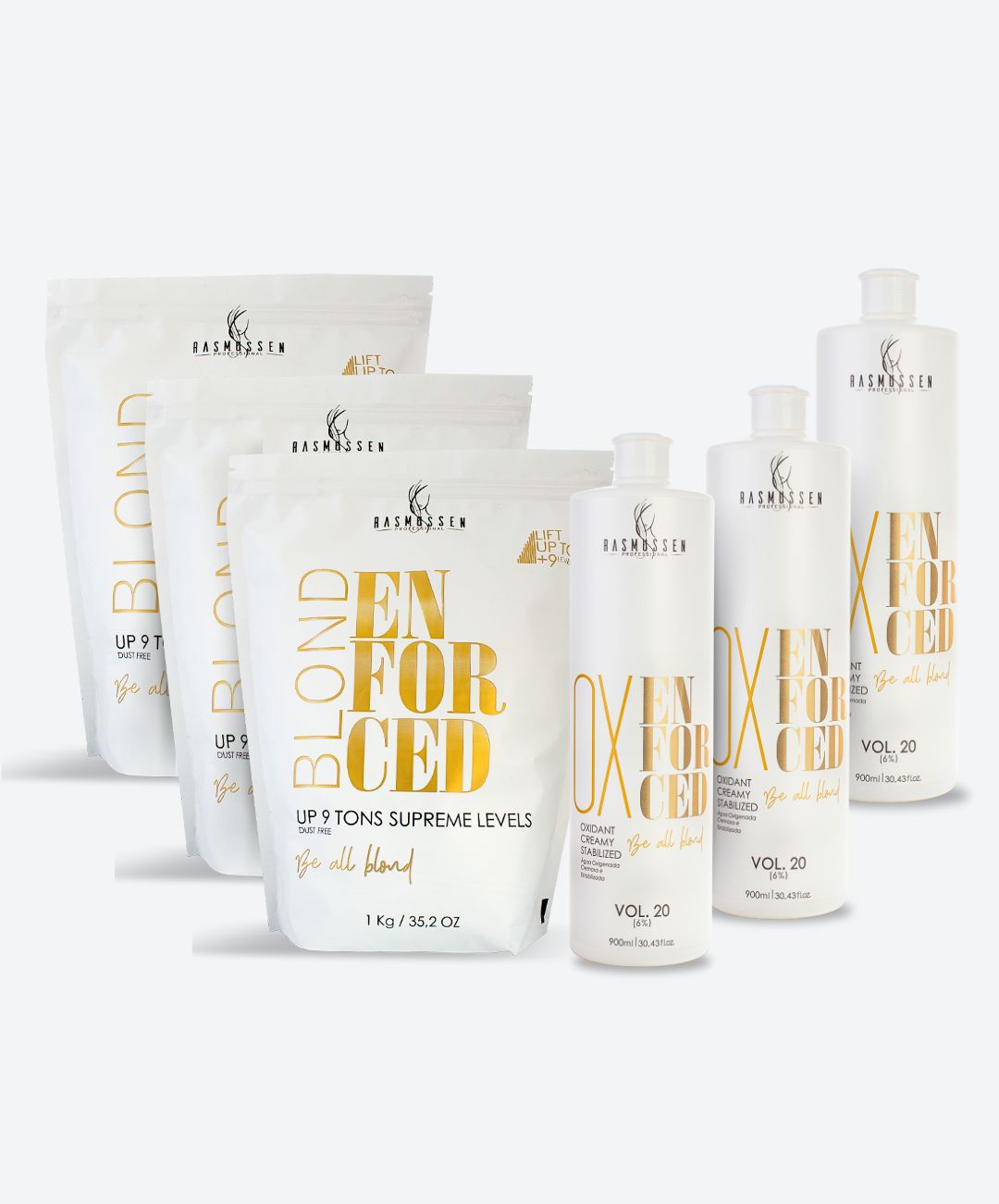 Contém: 03 Pó Descolorante Blond Enforced 1 kg + 03 OX Enforced 20vol 900ml